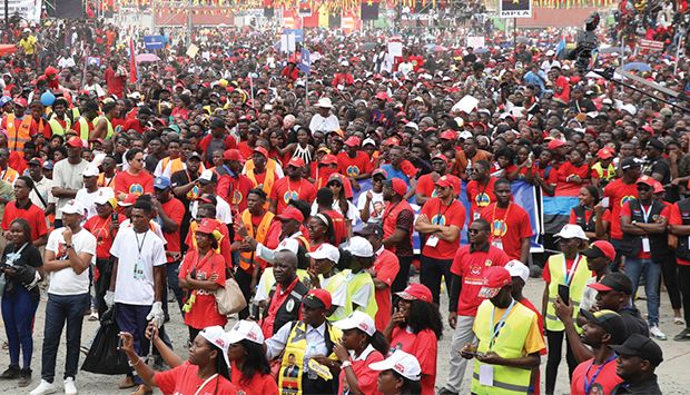 Trajados com as cores vivas que representam o MPLA, os jovens vibraram ao som de artistas nacionais que preencheram o momento cultural do encontro de massas.